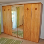 Das Schlafzimmer besteht aus einer Doppelbettanlage (1,80 x 2 Meter) mit verstellbaren Lattenrosten, 6-türigem Kleiderschrank, davon 2 Spiegeltüren. In diesem Zimmer bietet sich die Möglichkeit ein Gästebett oder Kinderreisebett aufzustellen (beides vorhanden). Bettwäsche wird gestellt. Größe ca. 17,6 qm. Zugang zur Terrasse.